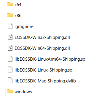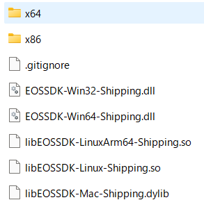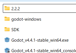 ⑬その後、「2.2.2」→「sample」→「addons」→「epic-online-services-godot」の順に開いていき、そこにある「bin」フォルダを選択し、「Ctrl + V」でペーストします。「bin」の中身が以下のようになっていたら成功です。