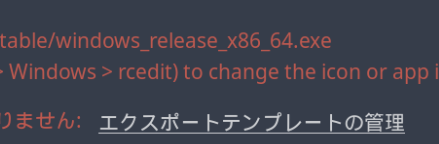 ①Godotの編集画面を開き、「プロジェクト」→「エクスポート」を押します。
